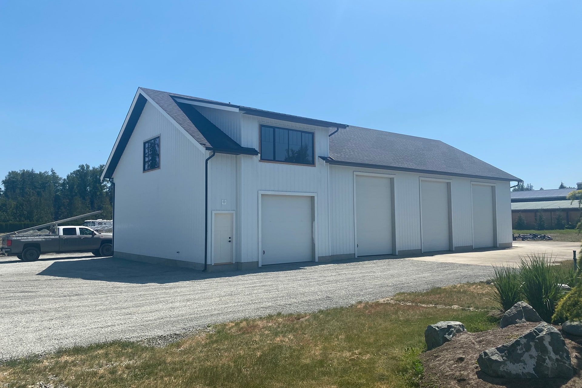 A spacious 5-bay storage shop featuring 16-foot ceilings, two large bay doors, and durable steel cladding. This versatile structure also includes a bonus loft, perfect for personal use or entertaining guests.