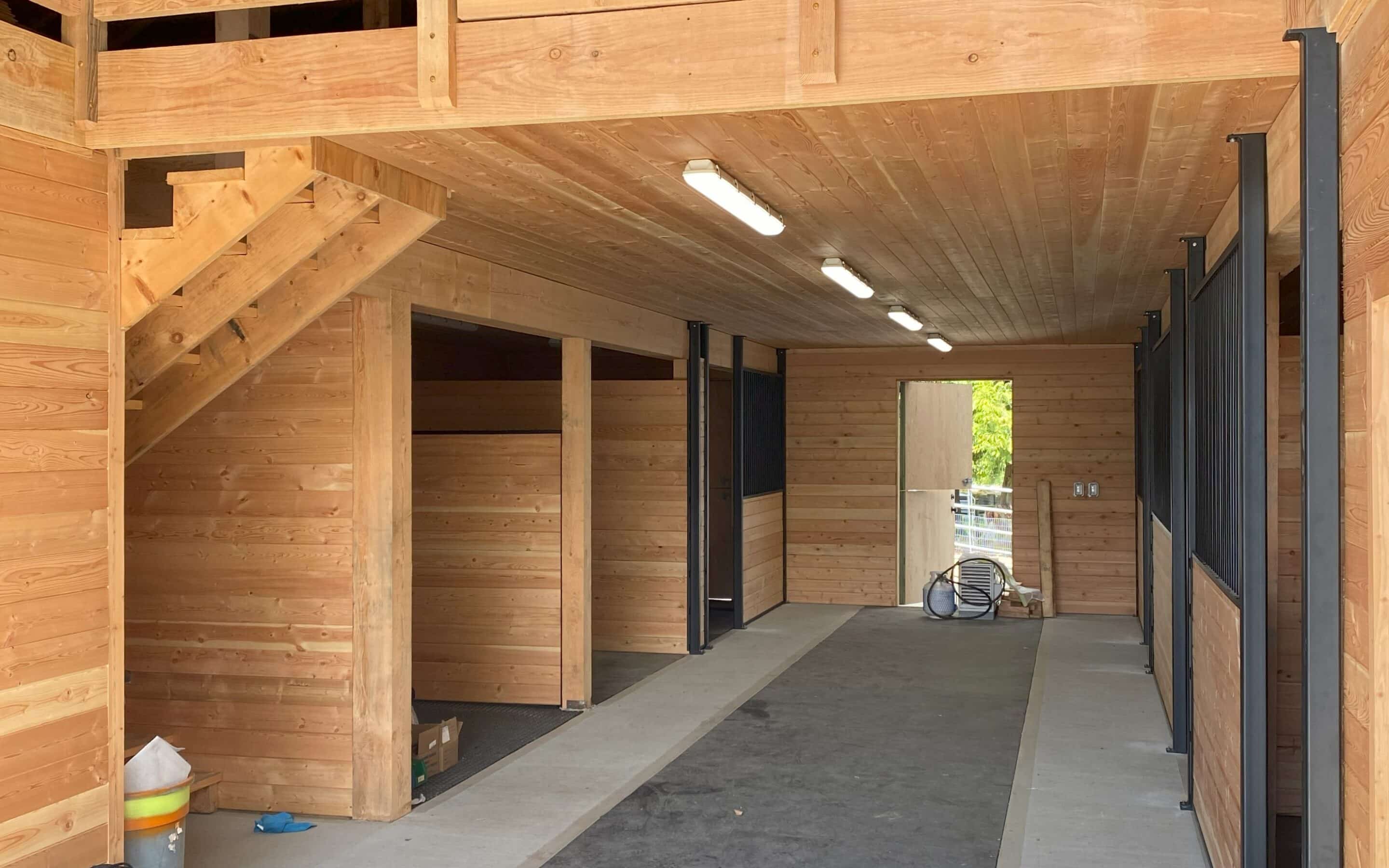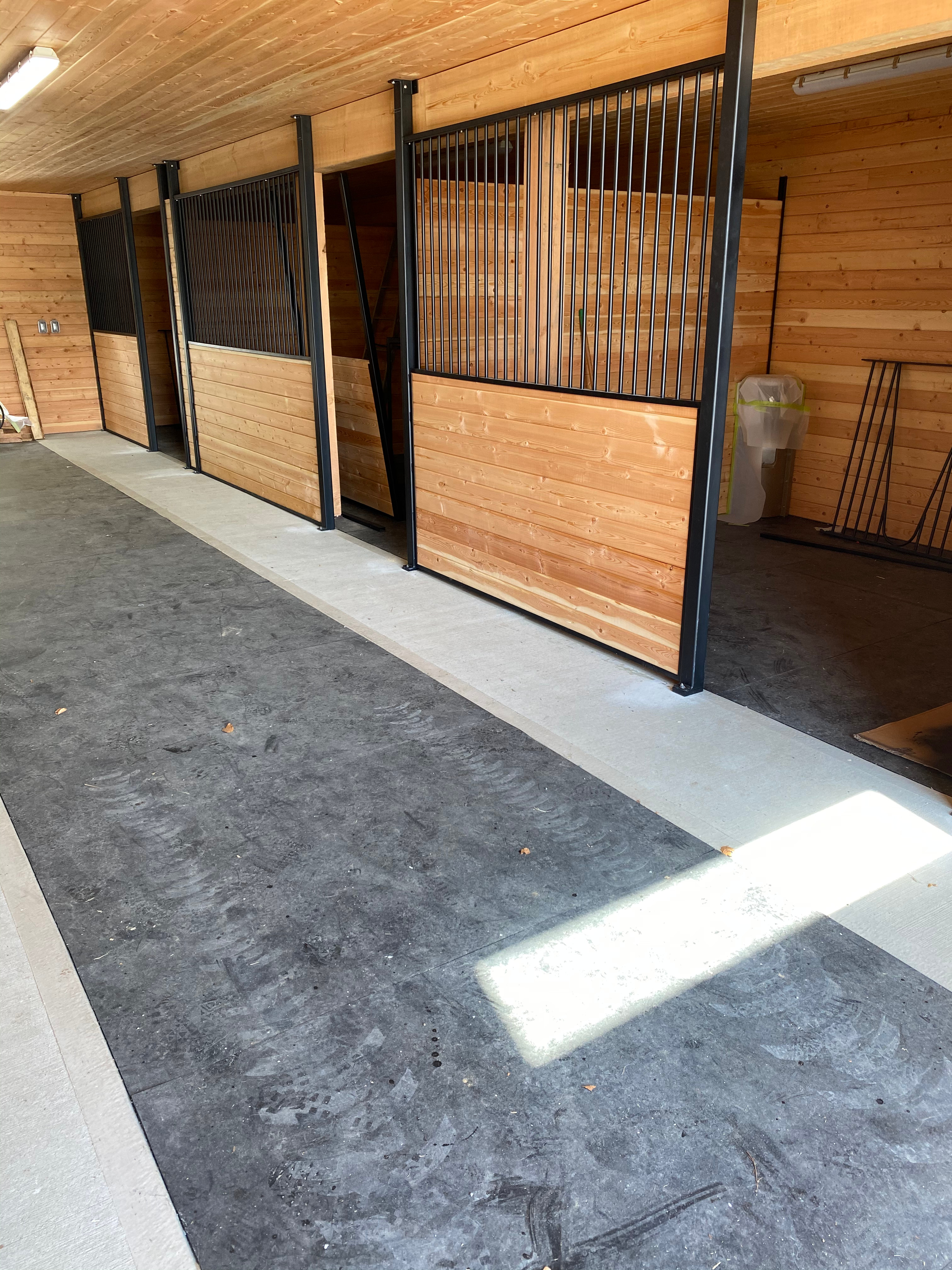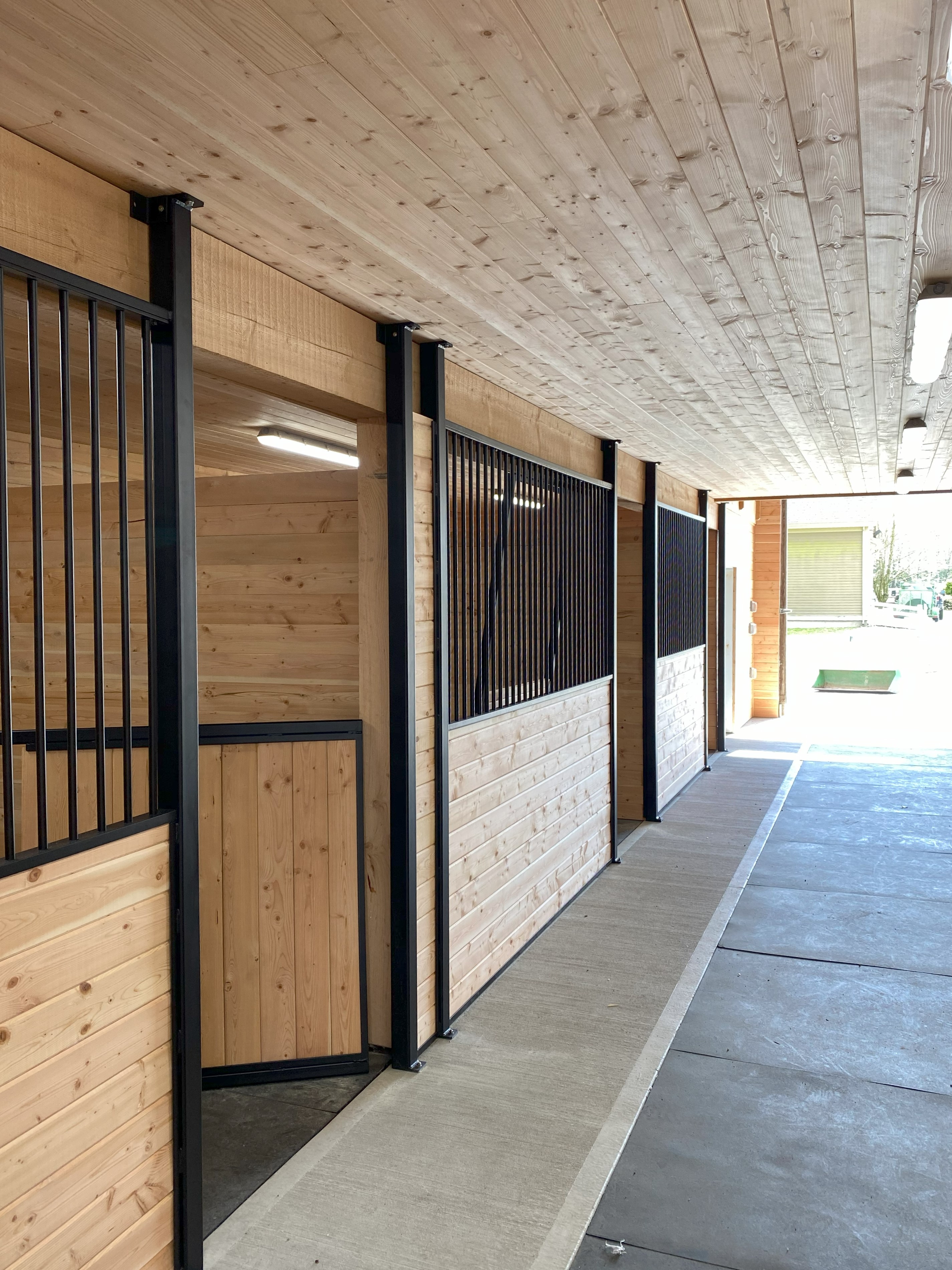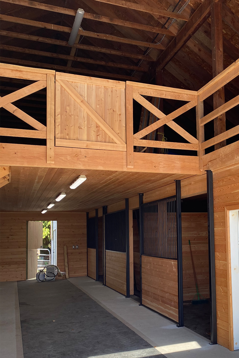 Renovated an old barn into a modern equestrian stable by adding new stalls, installing a durable concrete slab, equipping the space with automatic water feeders for horses, and enhancing the interior with tongue-and-groove cladding. Also included the addition of a fully functional wash rack for convenience and improved horse care.